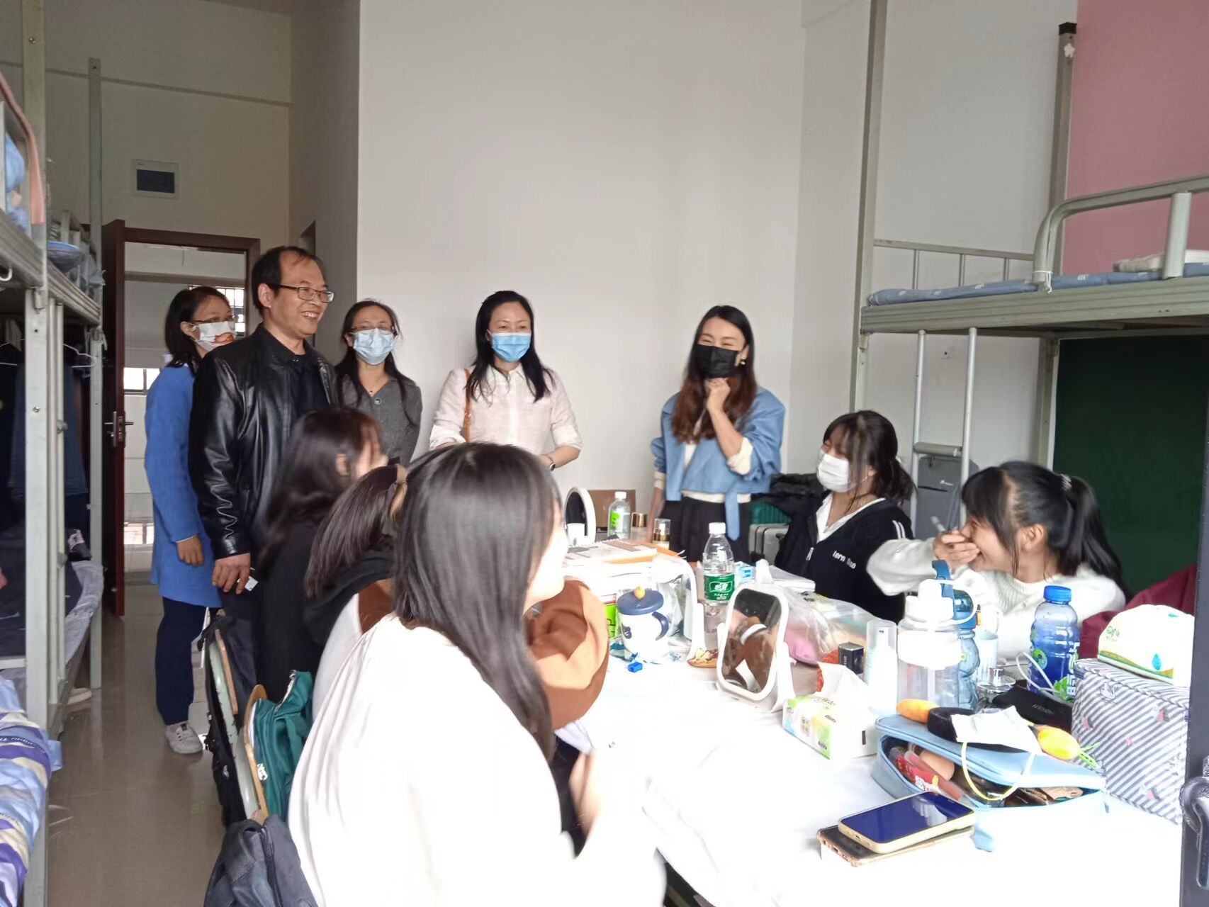 分管寝室工作的彭梦玲老师与所有专兼职辅导员一同给予了新生鼓励,在疫情防控情况下,要做好自身防护,提高安全意识。同时认真地记录了同学们反馈的寝室问题,协助员工解决相关问题。