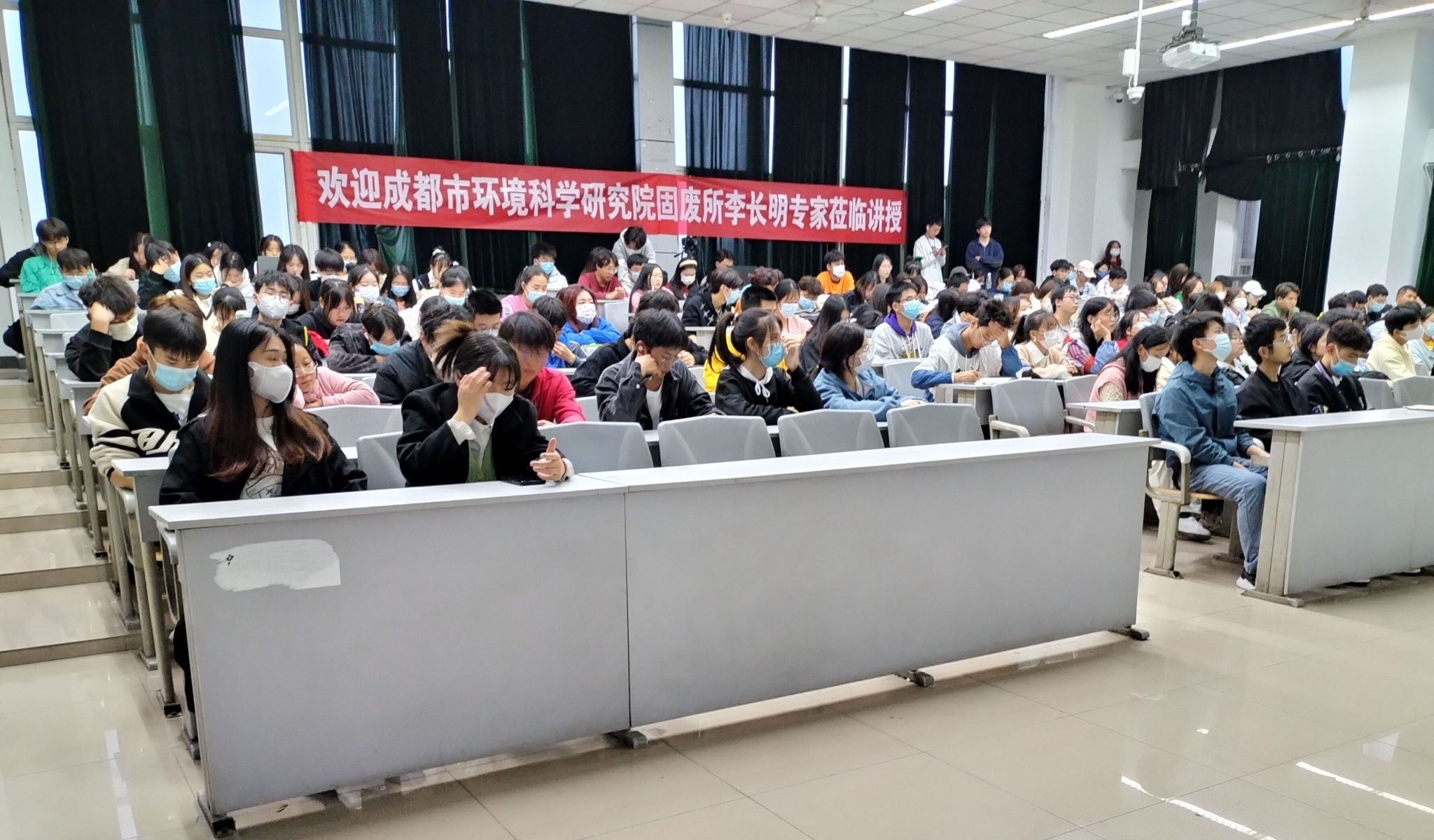 11月22日下午,成都高校生态环境大联盟在教学楼C401以线上线下结合的方式举办环保志愿服务活动专题宣讲活动,成都市环境科学研究院固废所专家李长明做主题宣讲。活动由税永红老师主持,环境专业及公司其他专业300余人参与。