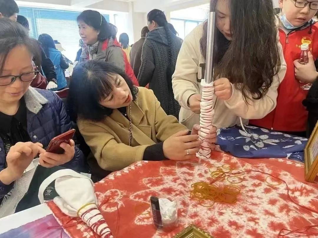 3月25日下午,球盟会团总支和员工会、染整科技协会走进玉龙社区开展了“环保生活,魅力扎染”公益活动,本次活动招募了40余名老中青社区居民参与。