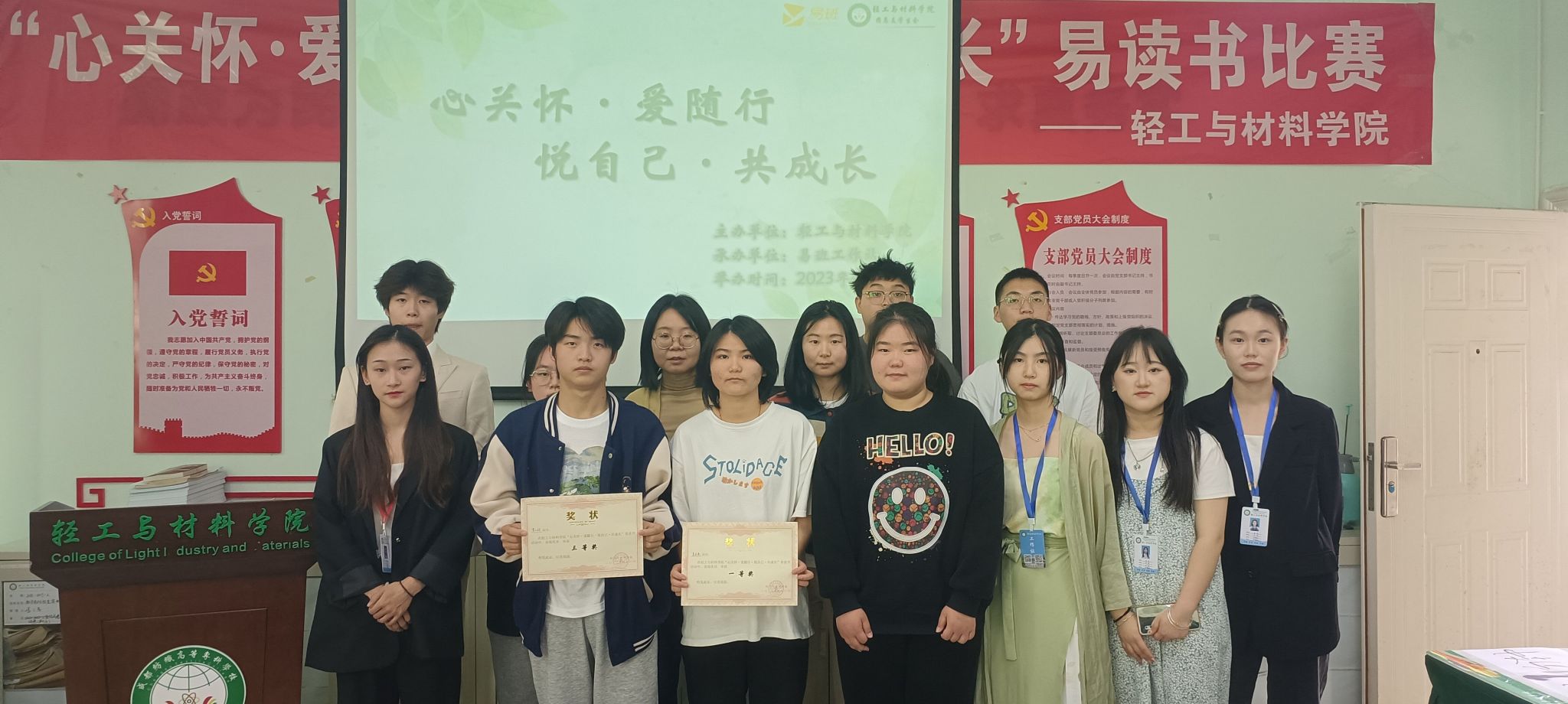 4月11日下午,球盟会“心关怀·爱随行·悦自己·共成长”“易读书”阅读分享比赛在球盟会活动室举行,共有10支队伍参赛,团总支员工会指导老师李小婉、专职辅导员李欣怡担任比赛评委,部分大一员工观摩。本次比赛由公司易班工作站主办,高材221班吕志豪同学主持。