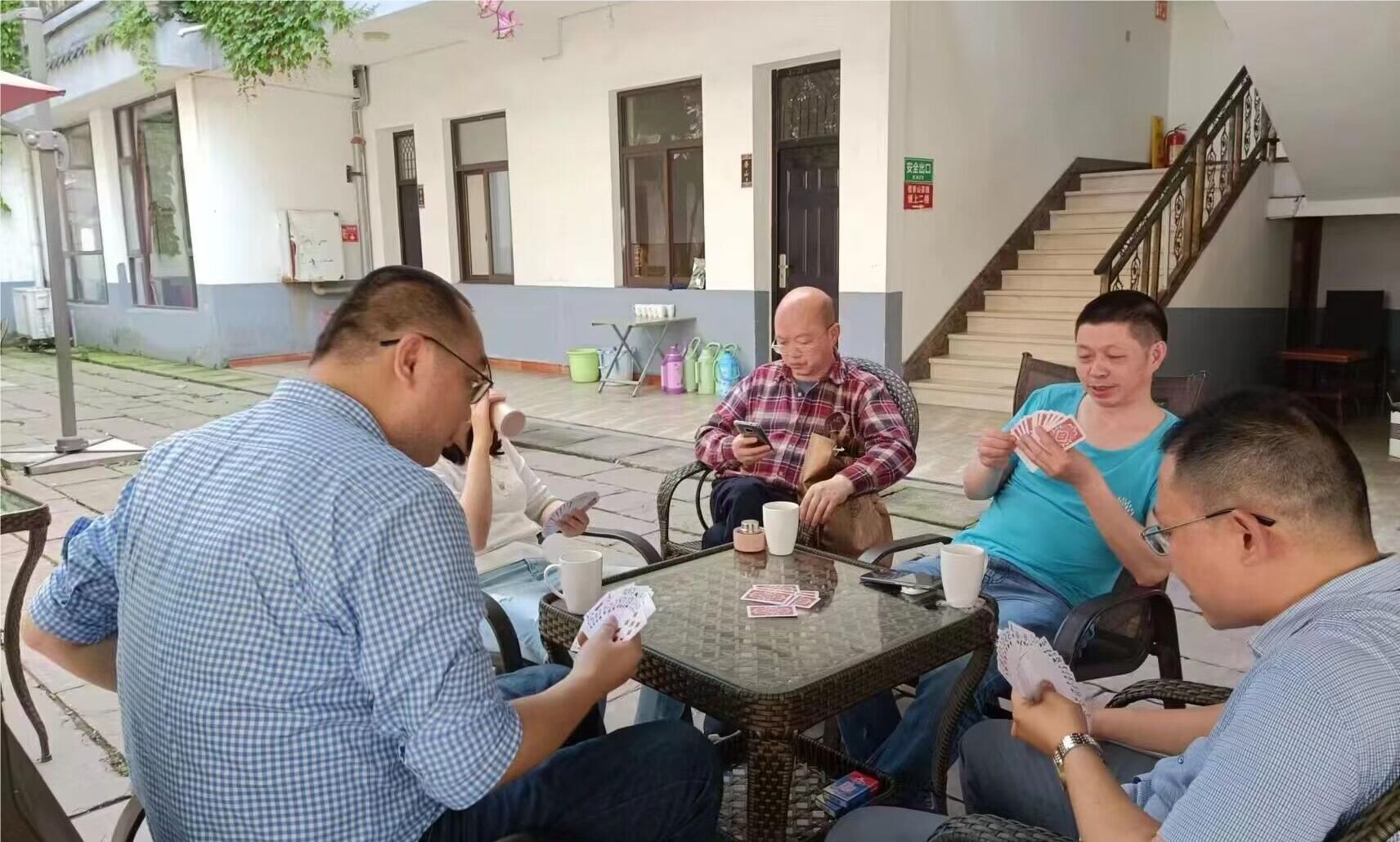 工会活动主要以“双扣”比赛、踢毽子比赛、桌游比赛为主,教师们自愿报名、自由组队,秉承公平、公正、团结协作的原则进行。活动中,参赛教师聚精会神、兴致高昂,观赛教师紧张观战、开怀畅笑,现场呈现出一片活泼、有序、愉悦的氛围。