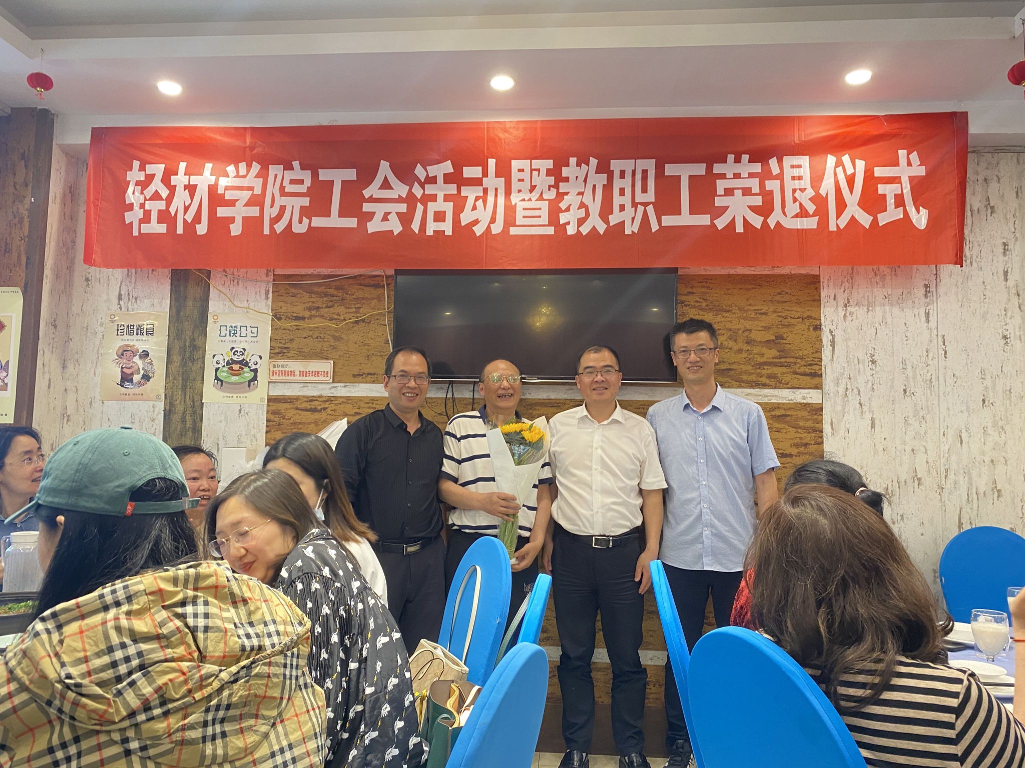 4月18日下午,球盟会赴犀浦街道“香漫西都食府”举办了“轻材同心·砥砺前行”主题工会活动暨教师荣退仪式。活动由公司专职副书记兼工会主席雷春主持,全体教职工参加,公司副董事长兼球盟会经理李明富应邀出席。