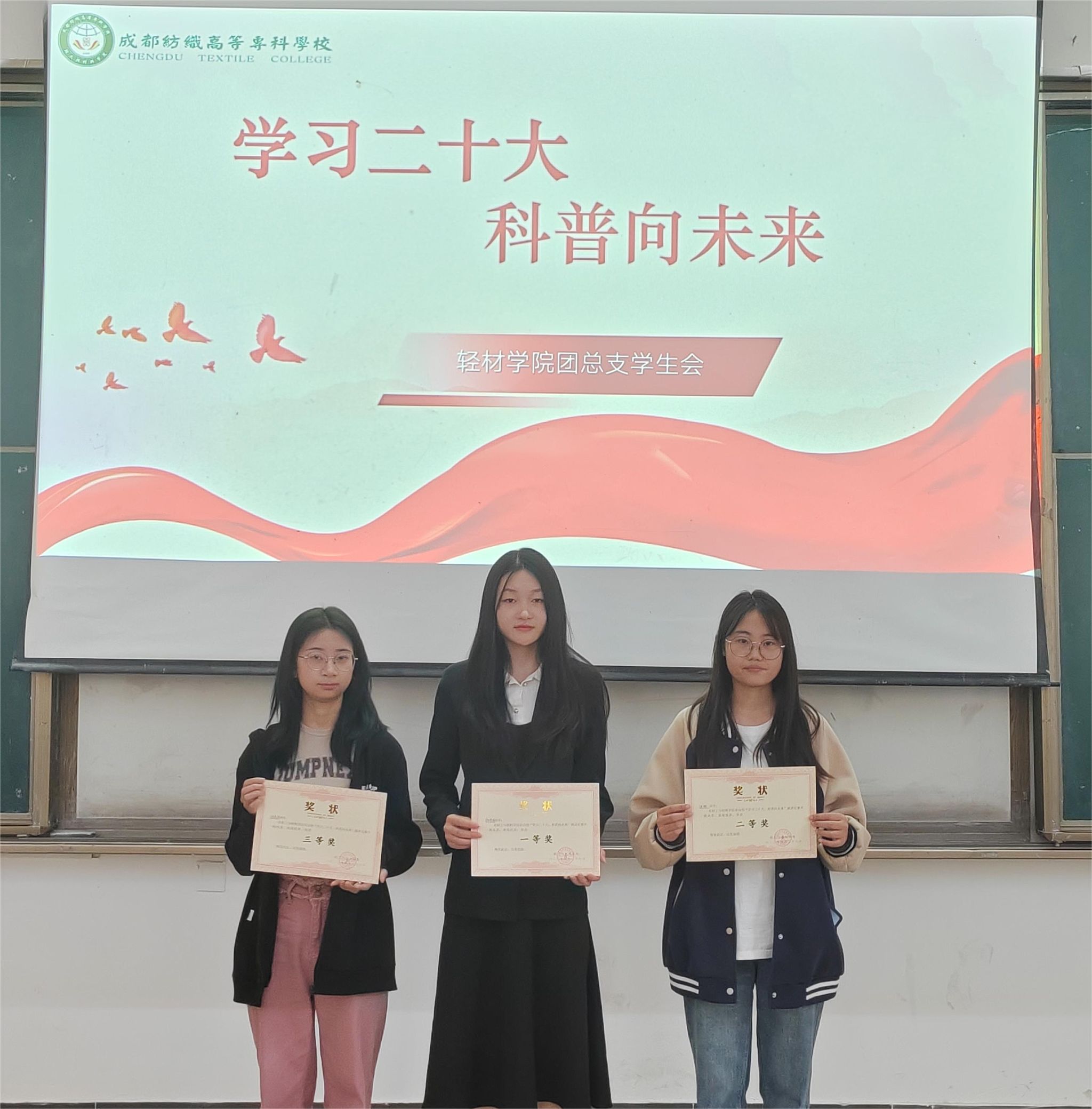 比赛环节,各参赛选手根据党的二十大报告中关于科技自立自强的论述,结合自身经历及学习实践,用生动的语言阐述感悟、用鲜活的事例交流思想,逻辑缜密、层次清晰、详略得当,从不同角度诠释了科技报国的使命和担当,抒发了自己对党、对祖国的无限热爱之情。经过激烈角逐,高材221杨梦琦荣获第一名,食品222张酝同学荣获第二名,环境221伏燕琼同学荣获第三名。