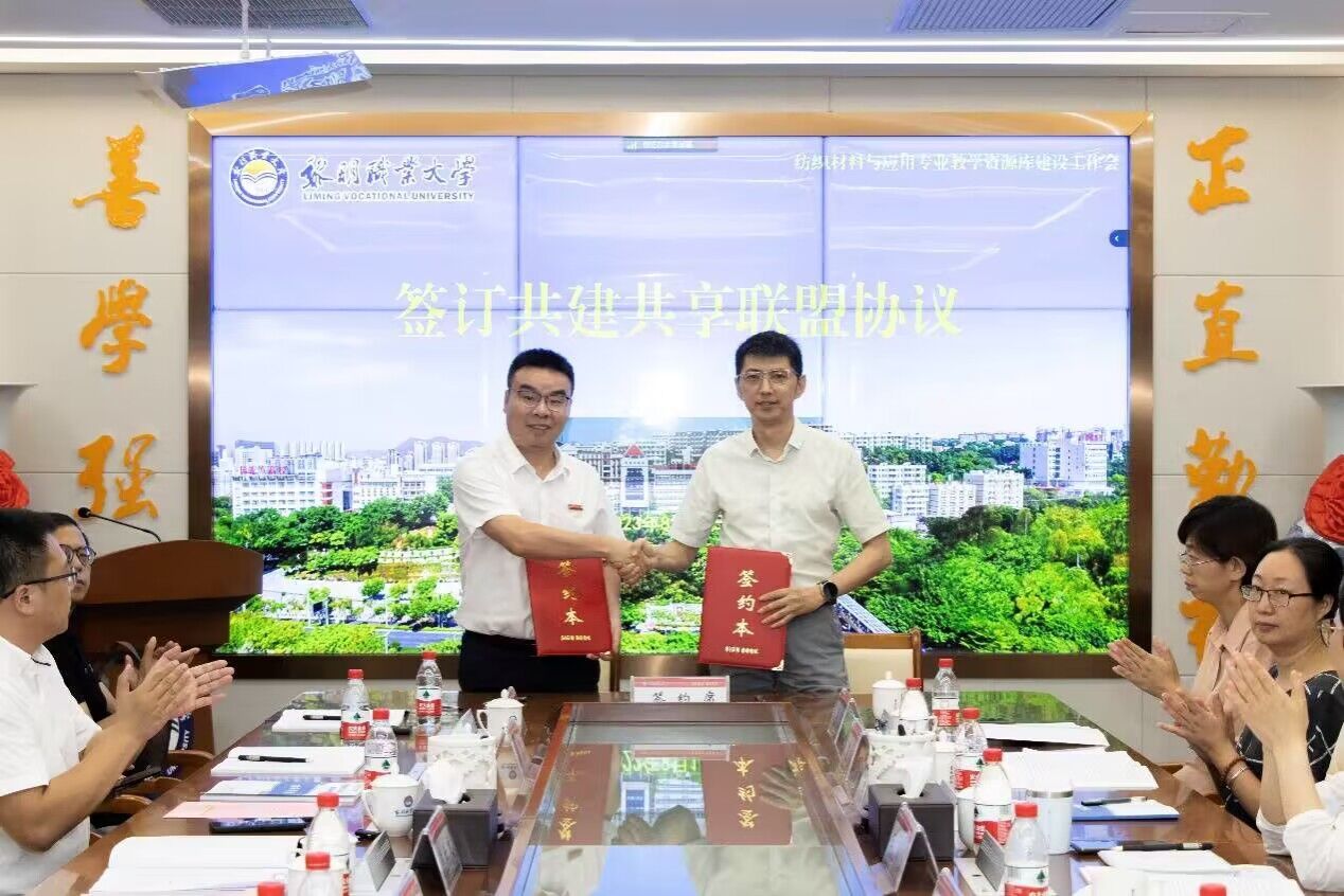 8月15日,我副董事长宋超、教务处处长王浩瀓、球盟会常务副经理蒋旎和数字化染整技术专业负责人张正源一行赴福建泉州黎明职业大学参加了纺织材料与应用专业教学资源库建设启动大会,并与黎明职业大学签订了资源库共建共享联盟协议。