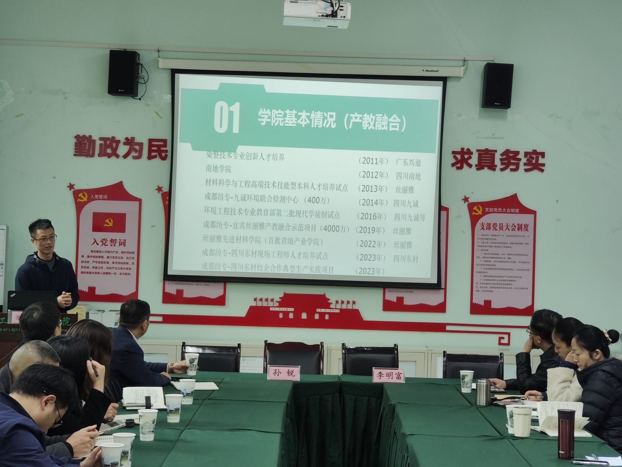 孙锐董事长对公司开展的工作给予了充分肯定,他对公司专业重构、人才培养方案优化、校企合作、团队队伍建设、科研和社会服务提升提出了建议和要求:一是要在适应市场、行业、企业的前提下,研究产业规划政策,优化学科专业布局;二是要适应职业教育发展需求,不断优化人才培养方案,将企业文化和企业管理、课程、技术标准融入课程建设;三是要跳出纺专、走出四川、面向全国,利用一切可以利用的资源,进一步加强与头部企业合作,做强特色,贡献社会价值;四是注重内部挖潜和高层次人才培育,一方面要有组织地引进有丰富企业经历的高级工程师进公司,另一方面要有计划地选派校内优秀教师到企业挂职锻炼,为企业提供实质服务;五是要用活校内科研管理办法,以省级数字化染整实验室、纤维材料实训基地为平台,提升科研和社会服务能力,支撑公司高质量发展。