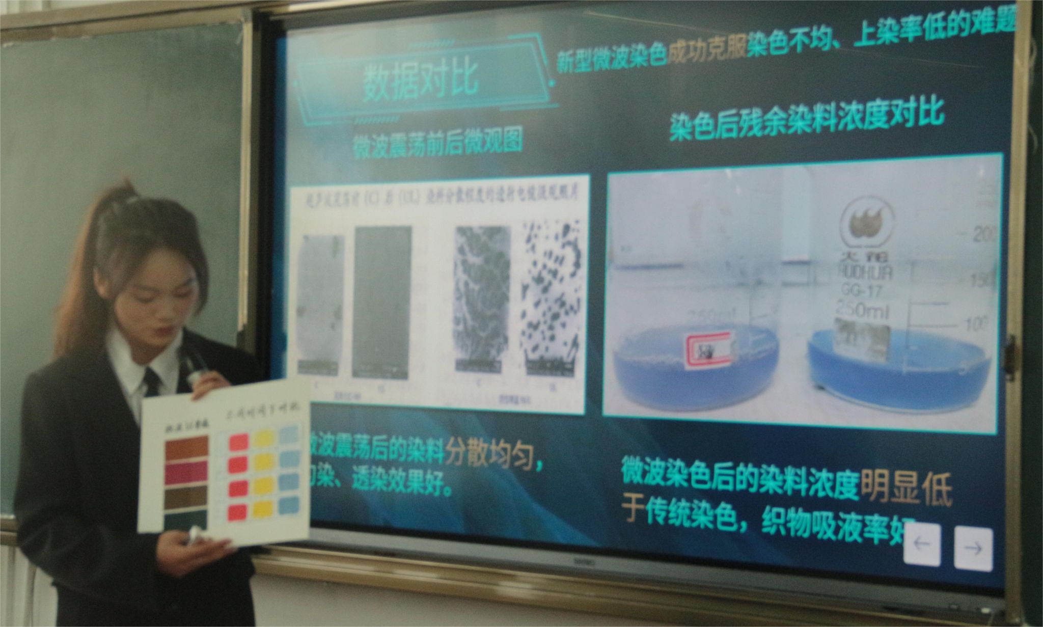 本次比赛经过前期参赛动员、项目征集、方案初审之后最终入选此次院级选拔赛的共有12项。赛事分为PPT展示和回答评委提问两个环节,根据每个项目组的介绍和回答评委提问的情况,评委老师依次对每个项目提出了改进建议,为后续参赛队打磨和完善作品指引了方向。经过激烈角逐,公司最终共推荐6项作品参加校赛,分别为“流光“易”彩-uv辐照对芳纶染色的改善”“光影织彩-结构色染色”“基于对浮床系统水质净化效果的影响研究”“无微不至-新型微波染色技术”“论乳酸菌发酵”“光剂一可觉光催化活化氧化剂用于医疗系统”。