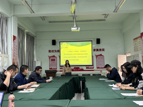 为贯彻落实公司《关于第三届青年教师教学竞赛的通知》精神,进一步激发公司广大青年教师更新教育理念和掌握现代教学方法的热情,充分发挥教学竞赛在推动教师队伍专业成长的示范引领作用,提高广大教师的教学技能水平和教学能力。球盟会于2024年4月9日举行了青年教师教学竞赛活动,常务副经理蒋旎、办公室主任杨岚、青年教师代表参加了本次比赛。