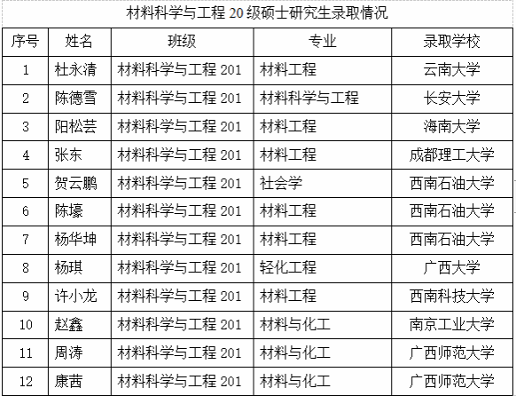 随着2024年全国硕士研究生录取工作落下帷幕。球盟会材料科学与工程专业2024届12名本科毕业生考研成功,占班级总人数的26.6%。今年考研录取率又创历史新高。