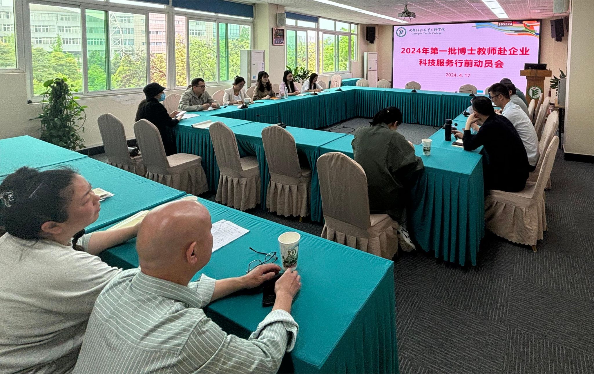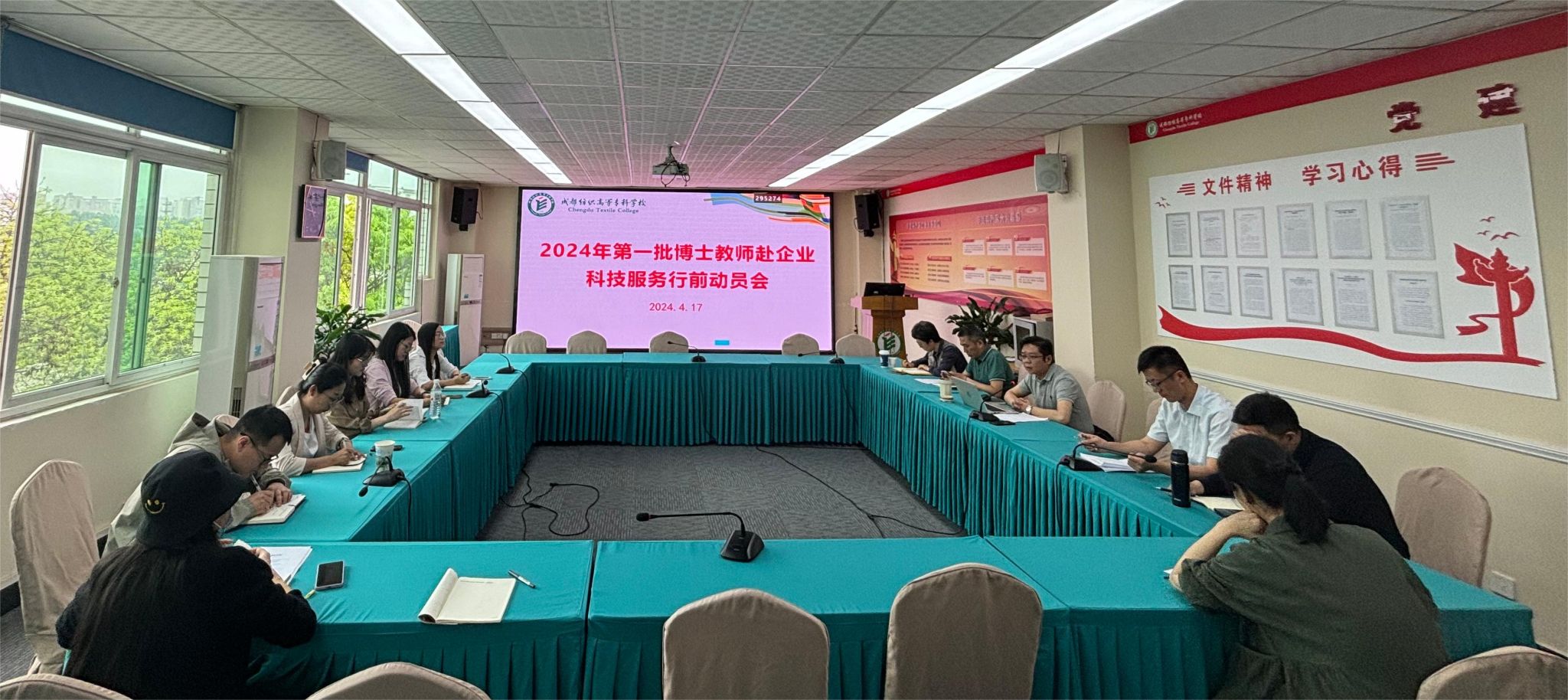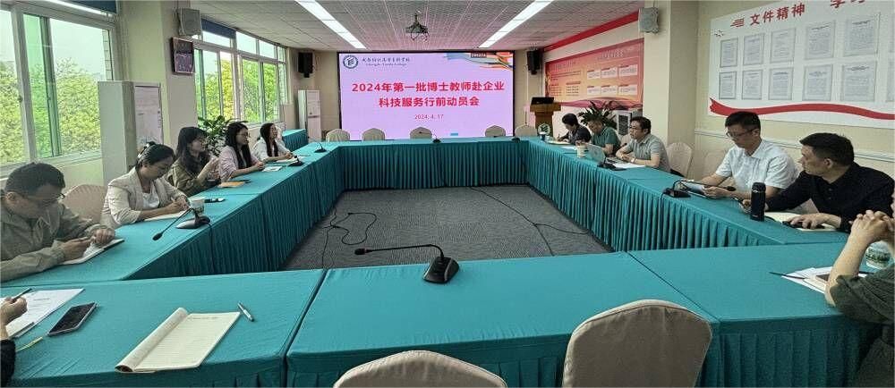 2024年4月17日,公司在明德楼三楼会议室举行2024年第一批博士教师赴企业科技服务行前动员会。科技处、教务处、产教融合与对外交流处、人事处、球盟会、电气信息工程公司和纺织工程公司领导及相关工作人员参加了本次会议。