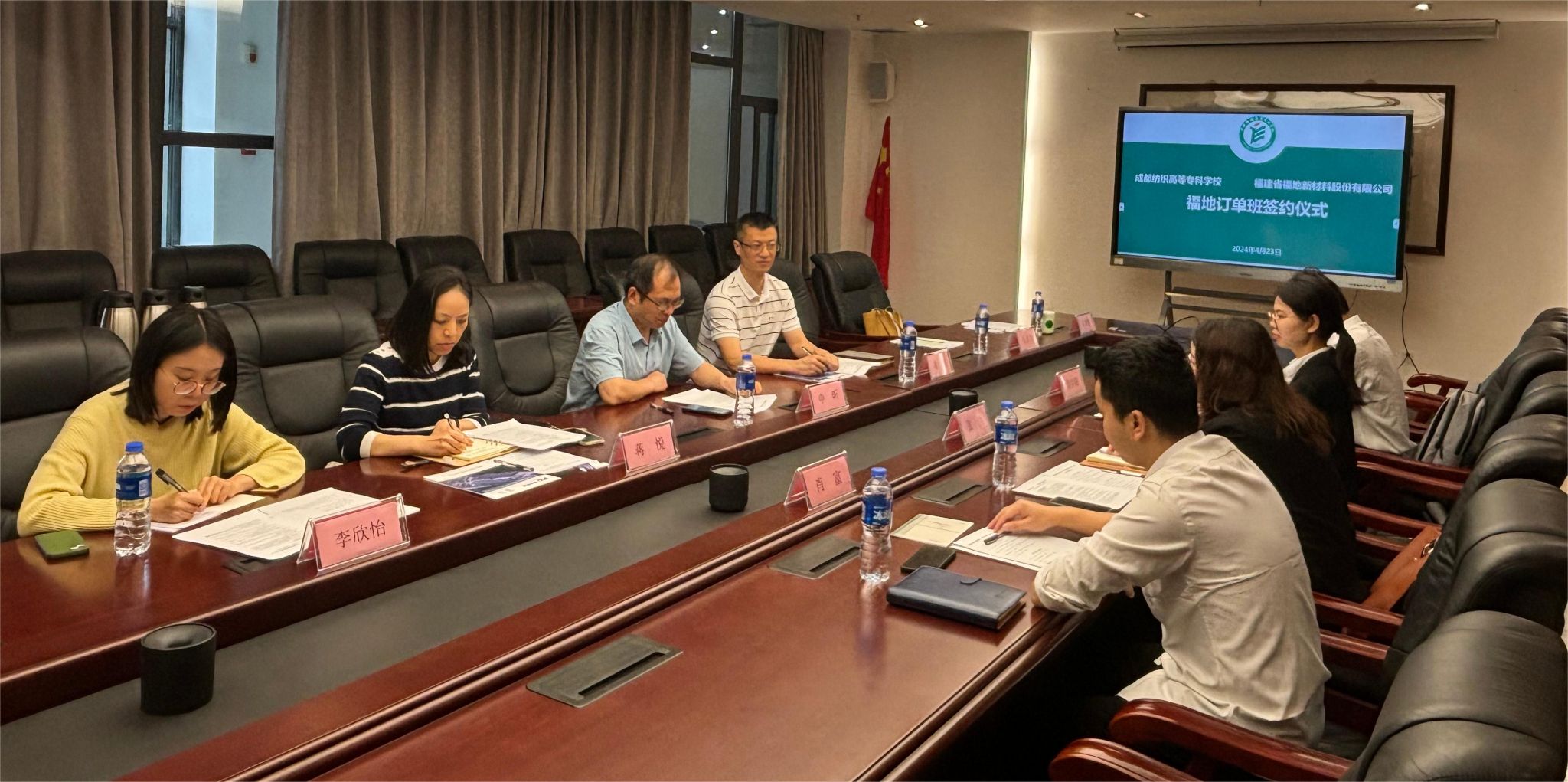 4月23日,球盟会与福建省福地新材料股份有限公司“福地订单班”签约仪式在图书馆一会议室举行,公司党总支书记申昕、常务副经理蒋旎、副经理蒋悦和辅导员李欣怡等教师与福建省福地新材料股份有限公司运营中心总监张洪、人力资源部经理颜春霞、研发技术部工程师肖富等参加签约仪式,仪式由公司常务副经理蒋旎主持。
