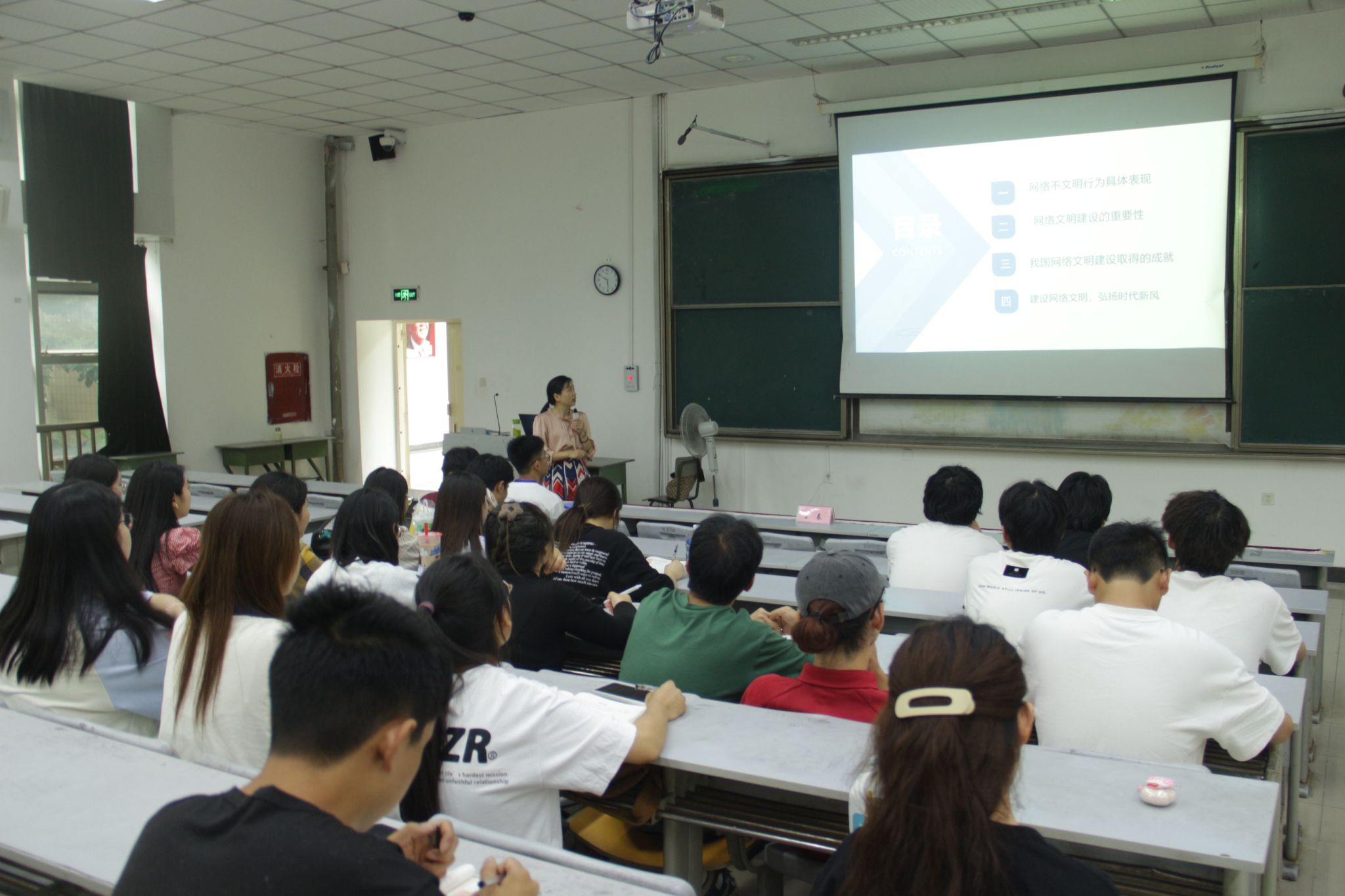 黄飞燕老师结合总体国家安全观,以“建设网络文明,弘扬时代新风”主题从四个方面进行了讲解。一是网络不文明行为的具体表现,二是网络文明建设的重要性,三是我国网络文明建设取得的成就,四是建设网络文明,弘扬时代新风。