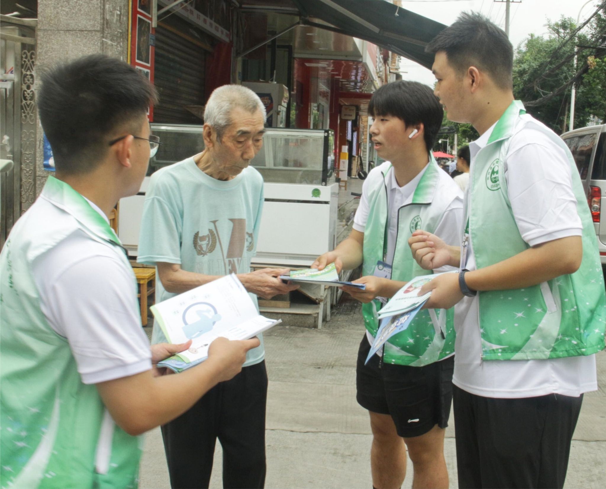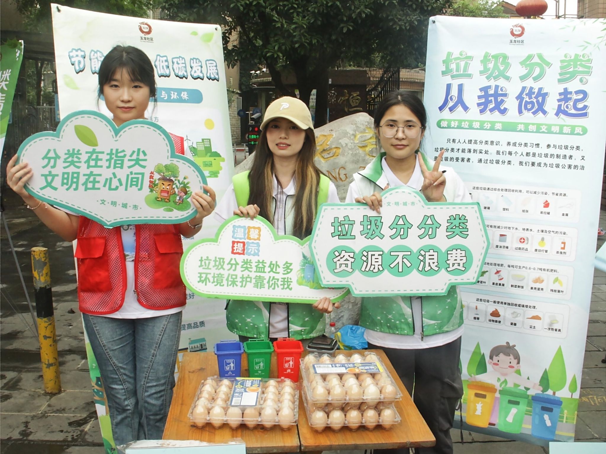 团队成员深入社区周边开展环保科普宣传工作。成员们通过现场讲解和示范,展示正确的垃圾分类方式;同时与社区工作人员一同,采取入户方式,向居民发放宣传资料,普及垃圾分类的重要性、分类方法及环保意义。在知识问答环节,居民热情参与、积极抢答并获得小奖品,现场气氛热烈欢乐。