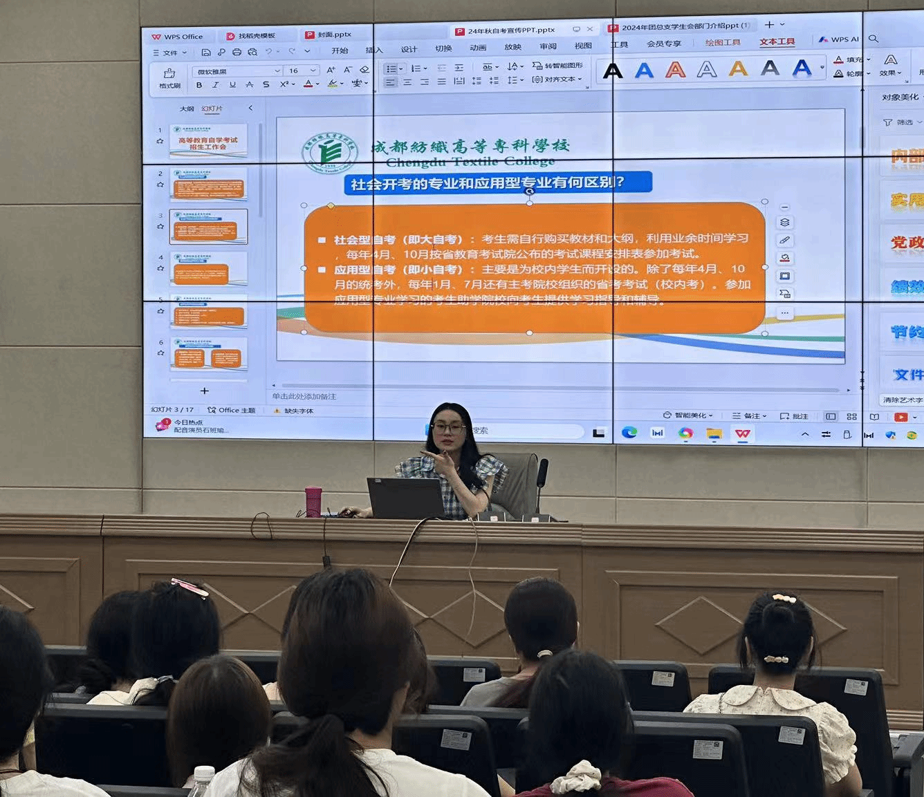 9月19日,球盟会在明德楼二楼阶梯教室设主会场、明德楼一楼阶梯教室和图书馆第四会议室设分会场为2024级新生上第一堂思政课。该课由公司党总支书记申昕、常务副经理蒋旎、辅导员周瑶主讲,2024级全体新生到场聆听。