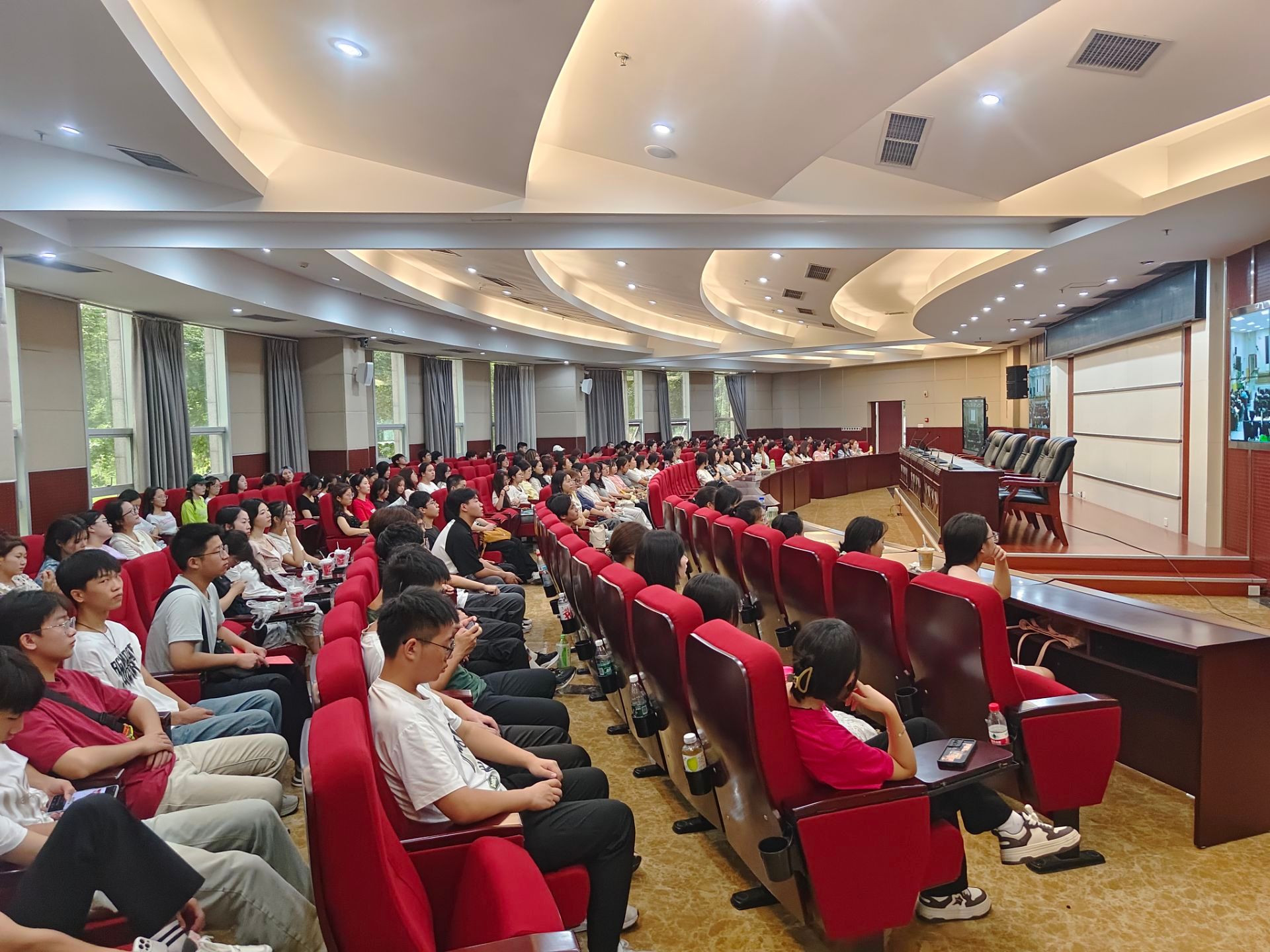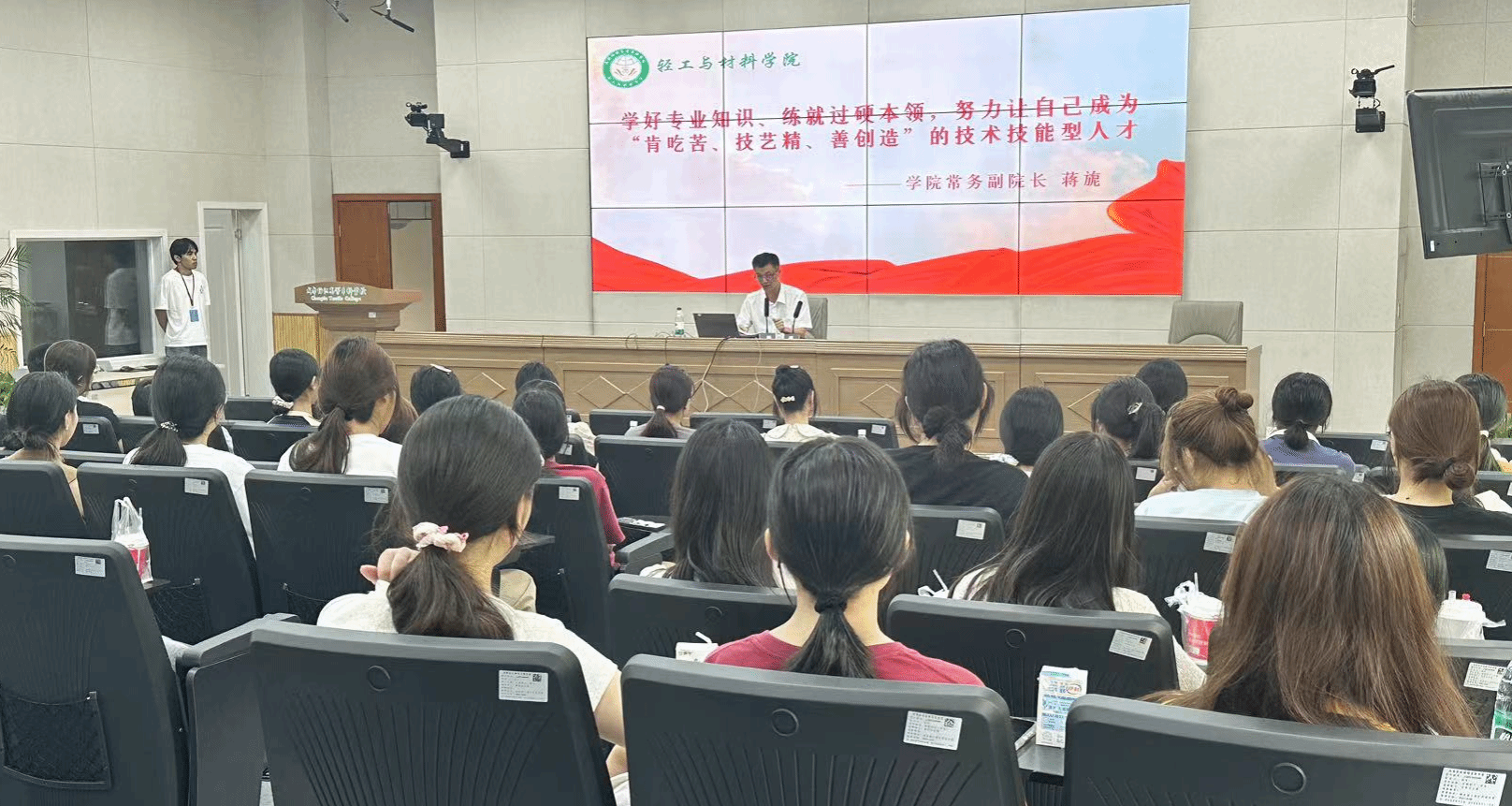 申昕从“我们从哪里来、我们应做什么、我们到哪里去、我们还要关注什么”四个方面开讲,以深入浅出的讲解和贴近生活的案例,与同学们探讨入校时的不同心理以及应对策略、大学时光如何有意义地度过、毕业后的不同去向选择等。同时,申书记指出,大学阶段是人生的“拔节孕穗期”,同学们要站在新的起点上,勤学苦练、勇于创新、磨砺品质,带着这份相聚在“成纺”的缘分,追光前行,让梦想在“轻材”扬帆起航。