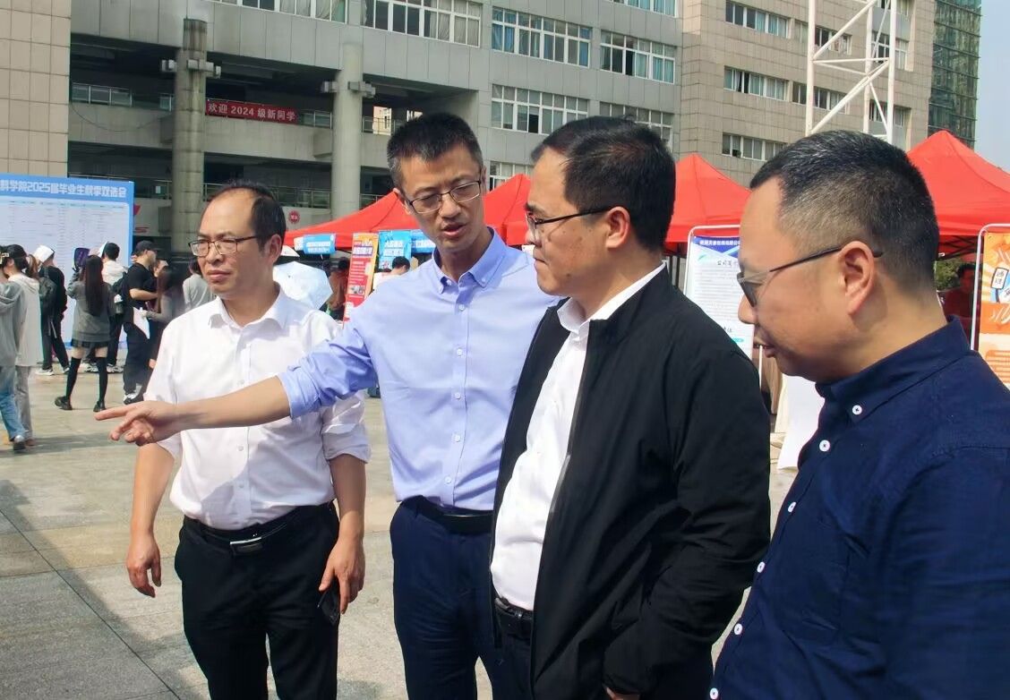 副董事长李明富,公司党总支书记申昕、常务副经理蒋旎,学创处副处长刁家志来到双选会现场,与用人单位和师生亲切交流:了解用人单位人才需求、招聘计划、岗位设置、报名人数等情况;听取他们对公司人才培养、实习实践、校企合作、产教融合等方面的意见建议;亲切询问参会员工求职进展,勉励其树立求职信心,积极投递简历。