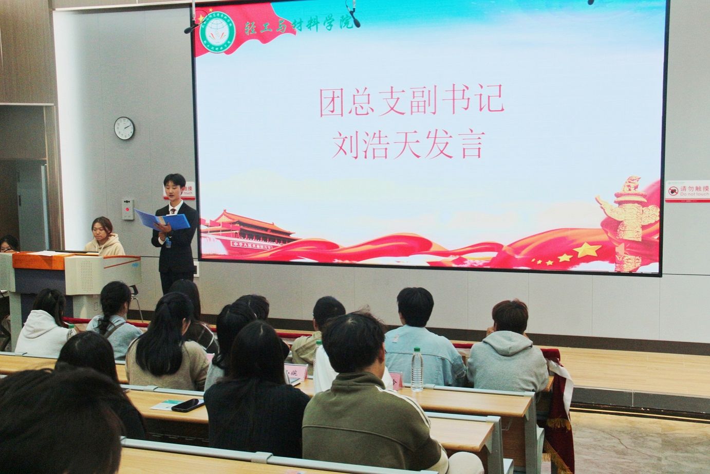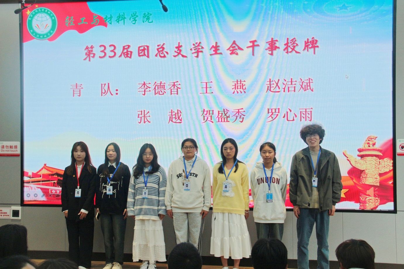 团总支副书记刘浩天同学总结了过去一年的工作情况,并勉励新一届干事要强化服务意识,协助老师、服务同学,继续秉承优良作风,在工作中开拓进取、不断创新,将公司团总支和员工会的精神发扬光大。随后授牌仪式正式启动,公司新干事依次上台,接受员工干部授干事牌。