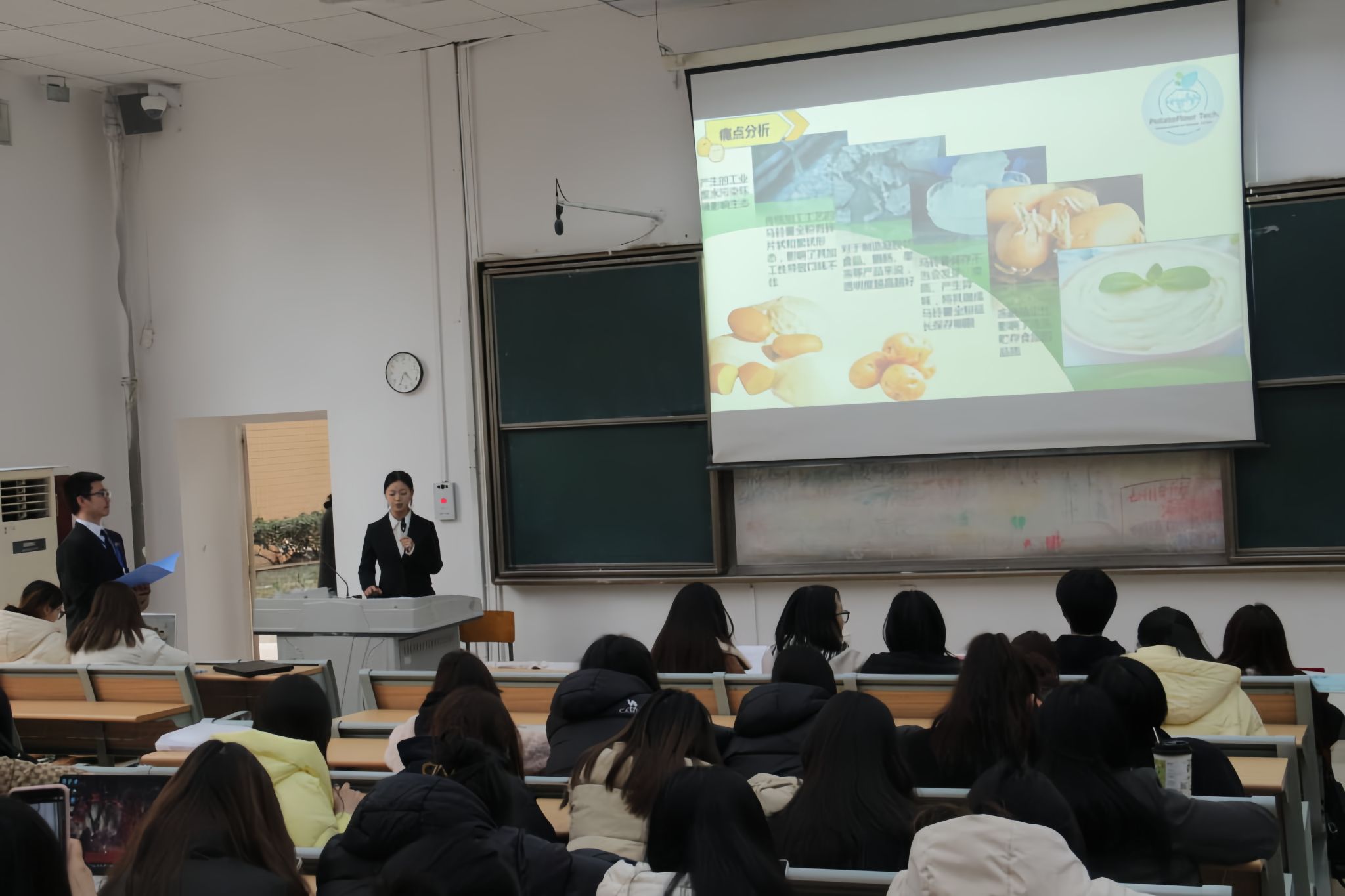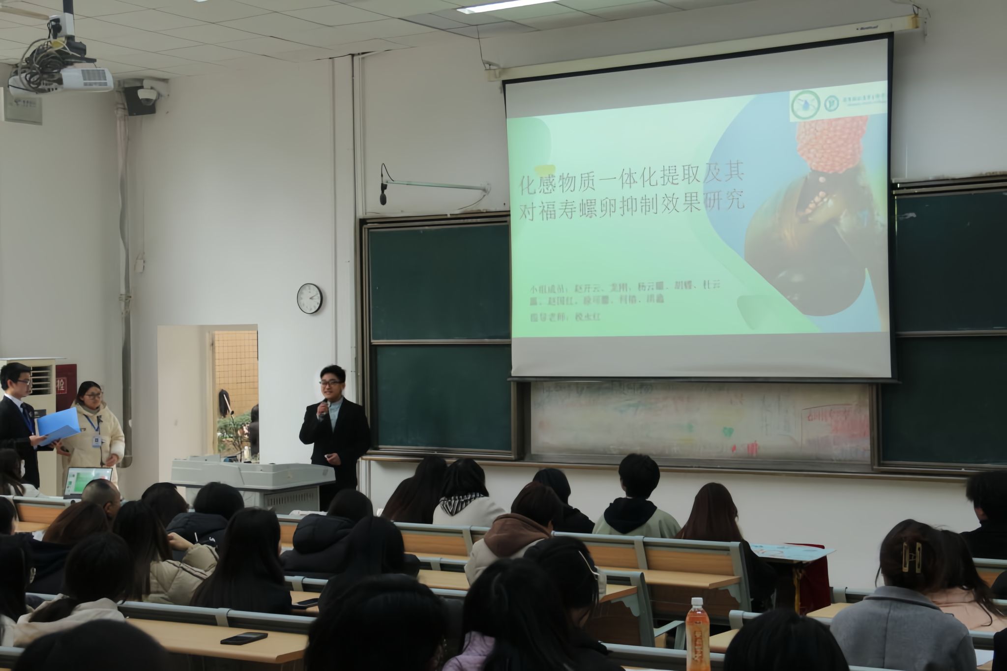 经过激烈角逐,《“薯一薯二”—马铃薯改性全粉产品》等2个项目荣获一等奖,《化感物质一体化提取及其福寿螺卵抑制剂的开发》等4个项目荣获二等奖,《腹壁新生盾》等6个项目荣获三等奖,并代表公司参加校级“嫘湖杯”比赛。当天,龙琦苇还针对晋级校赛的项目进行了全面指导并提出修改意见。