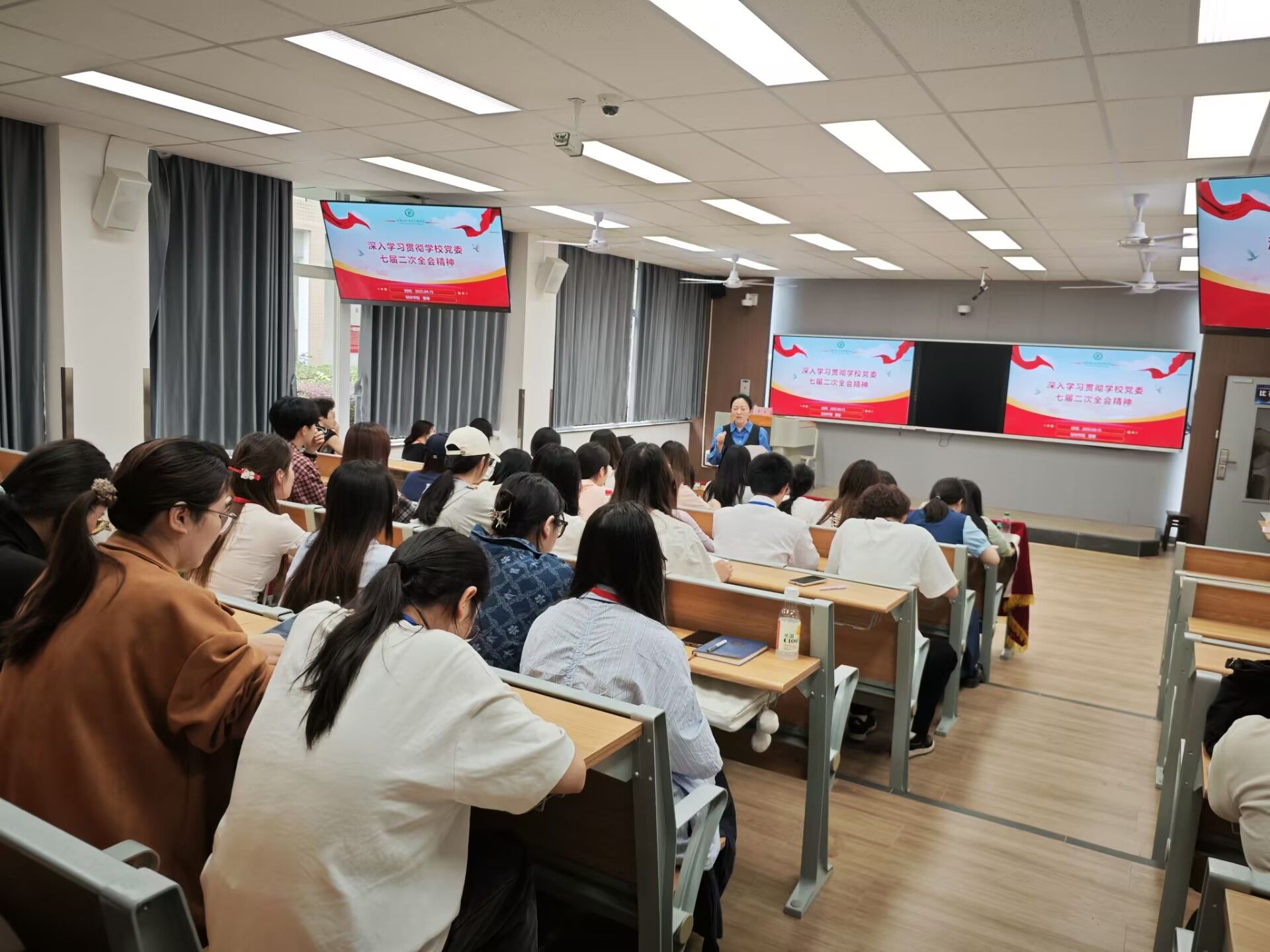 雷春从全面回顾公司党委七届一次全会以来的工作、全力冲刺建成职教本科、全面推进党的建设三个方面,全面解读了公司党委七届二次全会精神内涵。她指出公司坚持把人才培养放在首位、不断改善师生福祉,解决师生急难愁盼诉求,构建“1+3+5+10+N”立德树人工作体系,在立德树人、科研社会服务、产教融合等方面成效显著,社会影响力显著提升。针对“冲刺职教本科”战略目标,雷春强调,青年学子要主动将个人发展融入公司发展大局,在思想引领、学风建设、实践创新中发挥先锋模范作用。