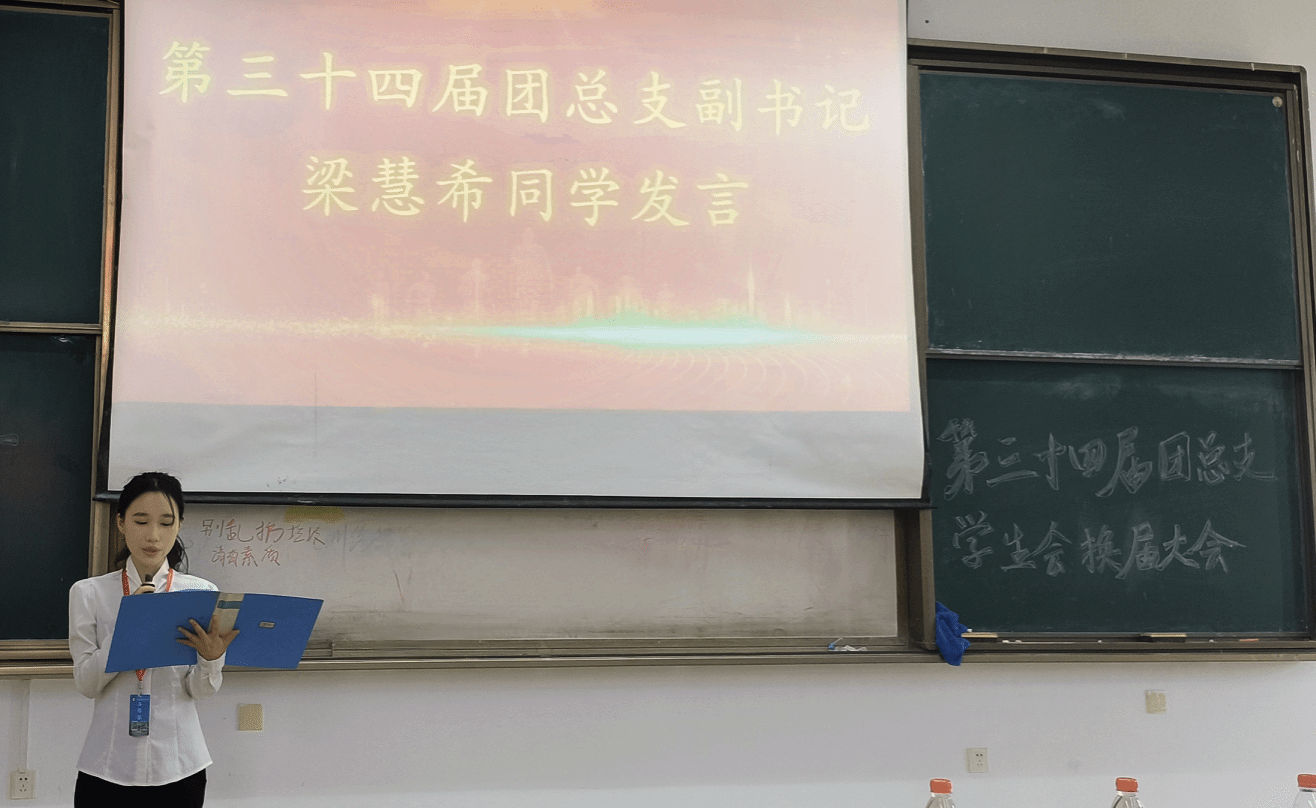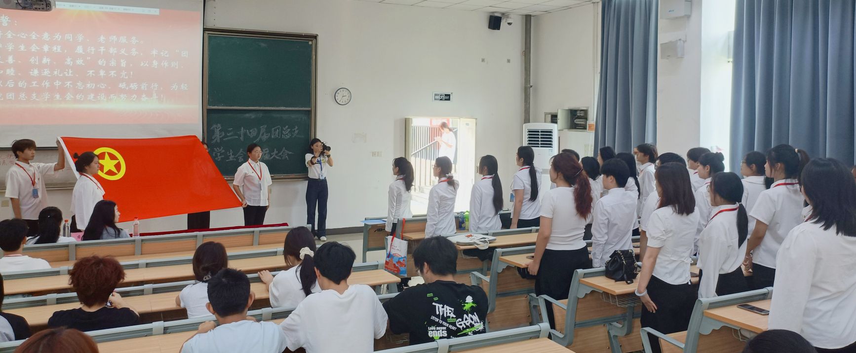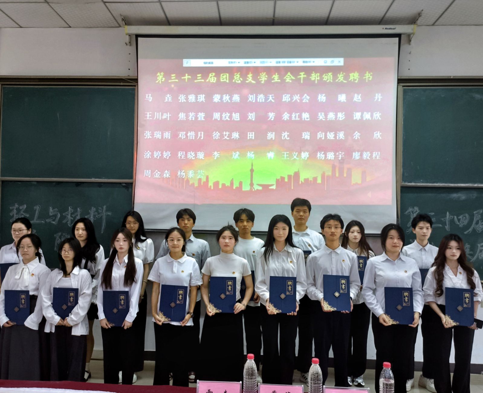第三十三届团总支副书记刘浩天代表上一届员工干部作述职报告,全面回顾和总结了过去一年工作的成果和不足。会上举行了庄严的授牌、团旗交接及新干部宣誓仪式,象征着责任与使命的传承。第三十四届团总支副书记梁慧希代表新一届成员作任职发言,明确了未来的工作规划与发展愿景。