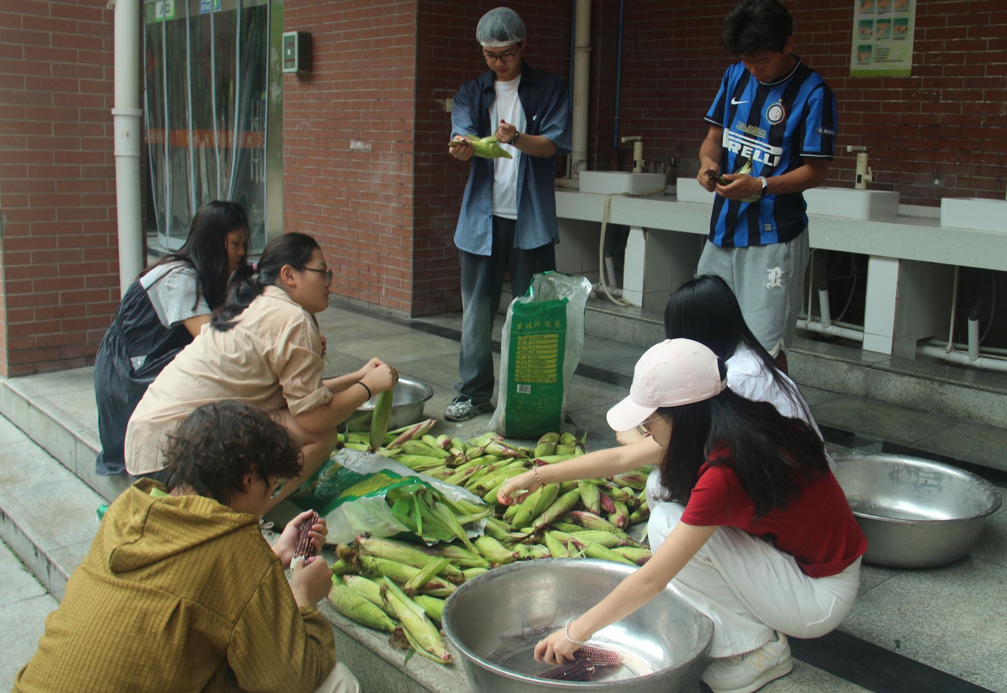 7月1日上午,学创处劳动教育负责教师谌琴、球盟会劳动教育指导教师李小婉带领同学们开展玉米加工分享活动。师生在北苑食堂一楼劳动教育成果分享窗口将“紫美人”玉米去皮、清洗、蒸熟后进行分发,全校师生有序排队领取。当热气腾腾的玉米递到师生手中时,参与玉米种植同学的脸上难掩自豪之情:“从播种到收获,我们见证了生命的成长过程,更体会到‘一分耕耘一分收获’的真谛。”