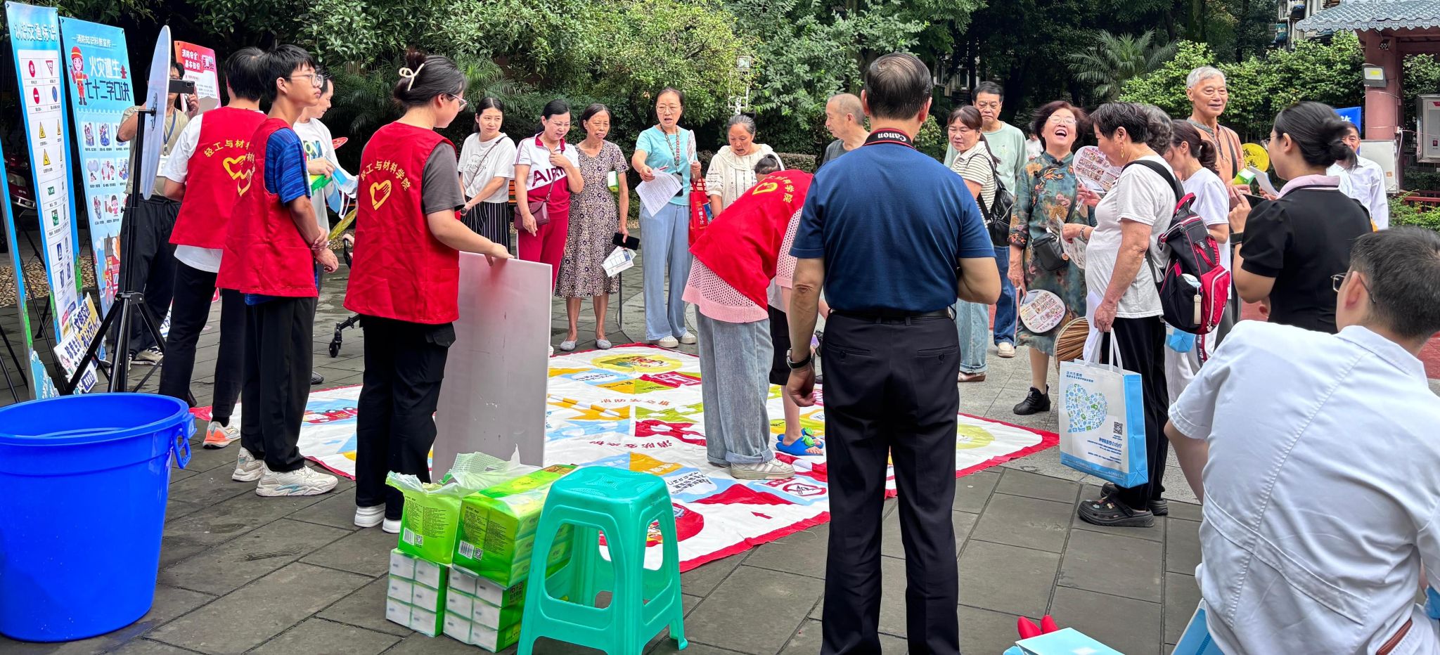 7月4日,在“今日花园”居民住宅小区开展的“科技同心,志愿同行”综合活动中,服务维度进一步拓宽。球盟会志愿者设置消防安全游戏区,发放涵盖反诈、交通、垃圾分类等资料,重点强调了头盔佩戴与电动车充电规范,还结合专业特色组织了漆扇定制活动;电信公司志愿者提供小家电维修服务,解决居民生活实际问题;三六三医院(犀浦院区)医护团队现场开展义诊,并科普急救知识与技能,实现健康服务“零距离”。