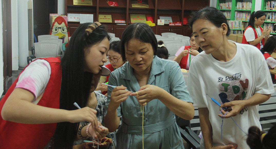为增长社区居民的非遗文化知识,球盟会2025年暑期“三下乡”社会实践团队分别于7月18日和7月21日在成都市郫都区犀浦街道珠江路社区党群服务中心、社区所辖“水榭花都”居民住宅小区,分别开展了“钩住美好,编织专属小世界”“翻扇越岭,与你漆行”为主题的非遗体验活动,吸引了百余位居民参与,使古老技艺在社区烟火中绽放新生。
